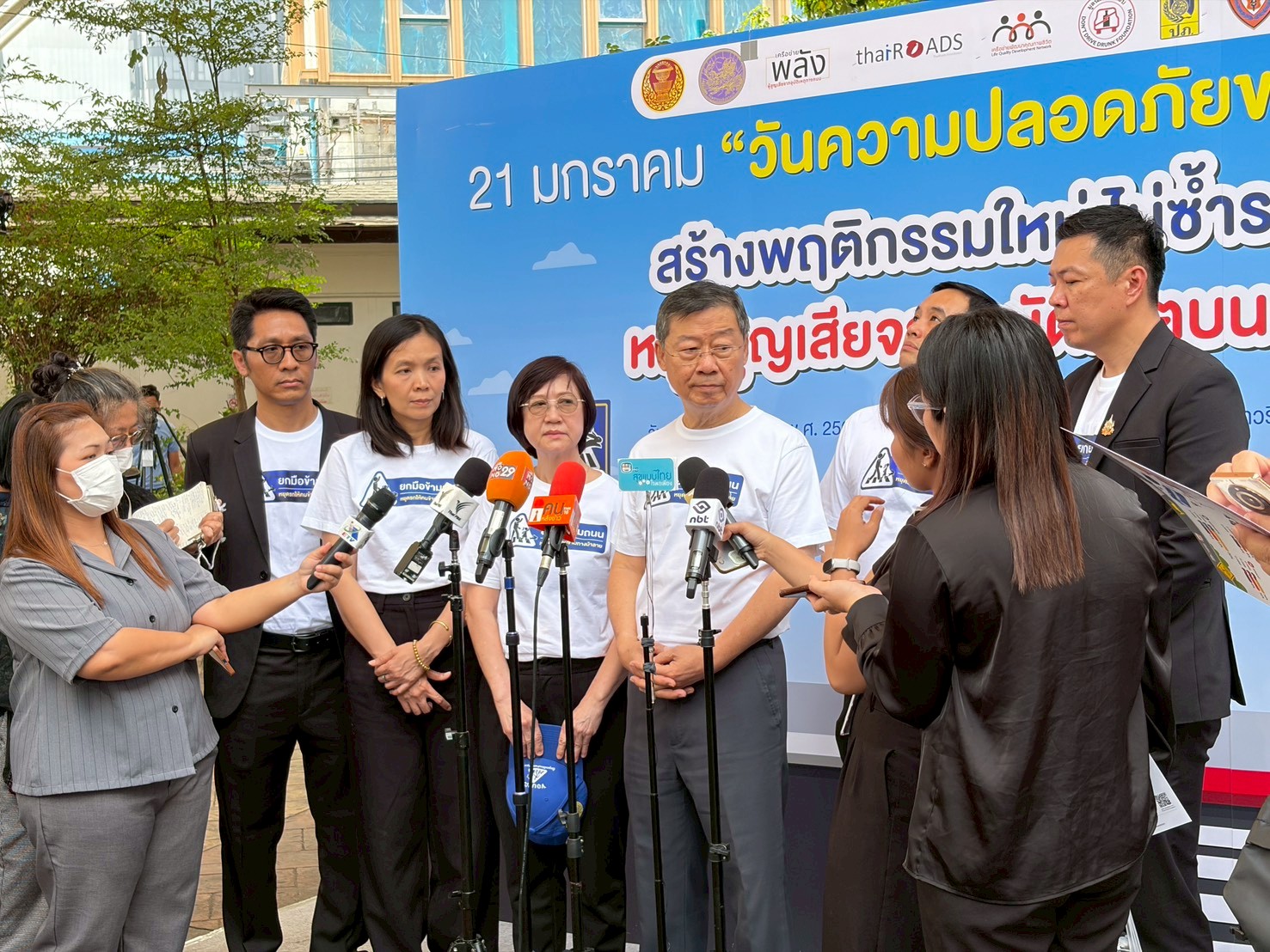 21 มกราคม “วันความปลอดภัยของผู้ใช้ถนน” รำลึก 4 ปี หมอกระต่ายและเหยื่ออุบัติเหตุทางถนน สสส. สานพลังไทยโรดส์-ภาคี สร้างความปลอดภัยทางถนน เปิดสถิติทางม้าลาย 24 จุด ในกทม. ปี 2568 พบคนหยุดรถให้คนข้ามทางม้าลายเพียง 6-8 % ชวนสร้างพฤติกรรมหยุดรถให้คนข้ามทางม้าลาย เมื่อวันที่ 21 ม.ค. 2569 เวลา 12.00 น. ที่ลานกิจกรรมวิคตอรี่พอยท์ เกาะพญาไท อนุสาวรีย์ชัยสมรภูมิ สำนักงานกองทุนสนับสนุนการสร้างเสริมสุขภาพ (สสส.) ร่วมกับ เครือข่ายพัฒนาคุณภาพชีวิต เครือข่ายพลังผู้สูญเสียจากอุบัติเหตุทางถนน และมูลนิธิไทยโรดส์ (ThaiRoads) กรมป้องกันและบรรเทาสาธารณภัย กองบังคับการตำรวจจราจร กรมการขนส่งทางบก และภาคีเครือข่าย จัดกิจกรรม 21 มกราคม “วันความปลอดภัยของผู้ใช้ถนน” สร้างพฤติกรรมใหม่ ไม่ซ้ำรอย หยุดสูญเสียจากอุบัติเหตุบนถนน
