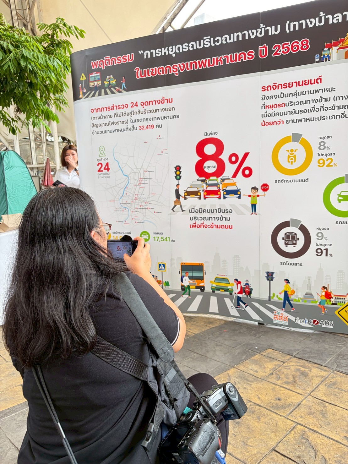 นอกเหนือจากนั้น พบว่าใน 18 จังหวัดใหญ่ทั่วประเทศ จำนวน 360 จุด สำรวจระหว่างเดือนกรกฎาคม–สิงหาคม พ.ศ. 2568  ครอบคลุมยานพาหนะทั้งสิ้น 44,547 คัน พบว่า ผู้ขับขี่หยุดรถให้คนข้ามทางม้าลายเพียงร้อยละ 6 ขณะที่อีกร้อยละ 94 ไม่หยุดรถ ในกลุ่มรถยนต์มีการหยุดรถสูงสุดที่ร้อยละ 7 ขณะที่รถจักรยานยนต์และรถโดยสารมีอัตราการหยุดรถเท่ากันที่ร้อยละ 5 โดยสรุปกล่าวได้ว่า สัดส่วนการหยุดรถโดยภาพรวม อยู่ในเกณฑ์ที่ค่อนข้างต่ำ