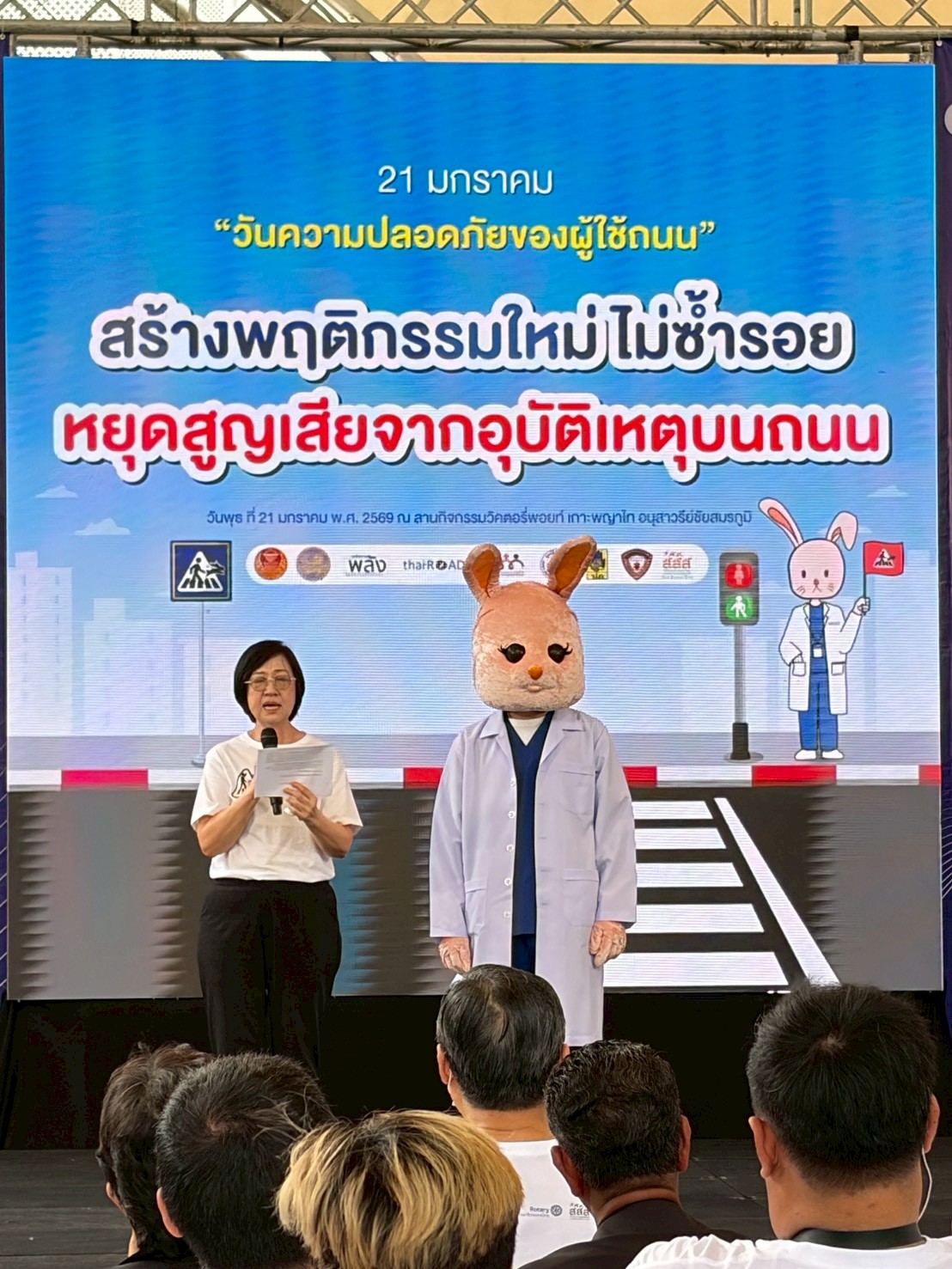 โดยมีนายสุรชัย เลี้ยงบุญเลิศชัย อดีตรองประธานวุฒิสภา คนที่หนึ่ง เป็นประธานกล่าวเปิดงาน กล่าวว่า คณะกรรมการบูรณาการกู้ชีพฉุกเฉิน สสส. และภาคีเครือข่าย ได้จัดกิจกรรม “หยุดสูญเสีย หยุดรถ ให้คนข้ามทางม้าลาย #ความดีที่คุณทำได้” ตั้งแต่วันที่ 21 ก.พ. 2565 – 21 ม.ค. 2566 ซึ่งได้ดำเนินการอย่างต่อเนื่องตลอด 1 ปี เพื่อสร้างวัฒนธรรมความปลอดภัยทางถนนอย่างยั่งยืน โดยอาศัยความร่วมมือจากหน่วยงานที่เกี่ยวข้อง รวมถึงมูลนิธิเมาไม่ขับ สอจร. ศูนย์วิชาการเพื่อความปลอดภัยทางถนน (ศวปถ.) มูลนิธิไทยโรดส์ และภาคีเครือข่ายกว่า 100 องค์กร ส่งผลให้คณะรัฐมนตรี (ครม.) และศูนย์อำนวยการความปลอดภัยทางถนน กำหนดให้วันที่ 21 มกราคม ของทุกปีเป็น วันความปลอดภัยของผู้ใช้ถนน ไม่เพียงแต่กรณีของหมอกระต่าย แต่ยังเป็นการรำลึกถึงเหยื่ออุบัติเหตุทางถนน และเตือนใจประชาชนให้ร่วมมือกันสร้างความปลอดภัยในการใช้รถใช้ถนนอย่างจริงจัง ส่งผลให้มีการเปลี่ยนแปลงทางกายภาพ เช่น ปรับปรุงพื้นที่ทางม้าลายให้เห็นชัดเจน มีการตีเส้น เพิ่มสัญลักษณ์ สัญญาณป้ายไฟบอกตำแหน่งทางม้าลาย เป็นเครื่องหมายเตือนให้ผู้ขับขี่ระวังเป็นพิเศษ โดยเฉพาะช่วง 15 เมตร ก่อนถึงทางข้ามหรือทางม้าลาย รวมถึงป้ายเตือนลดใช้ความเร็วไม่เกิน 30 กม./ชม. ป้ายตำแหน่งทางข้าม ป้ายระวังคนข้ามถนน เพื่อให้รถลดความเร็ว และควรปรับปรุงทางม้าลายที่อยู่จุดเสี่ยง เช่น หน้าโรงเรียน โรงพยาบาล หน้าสถานที่ราชการ ตลาด